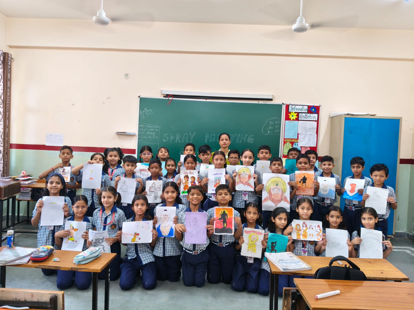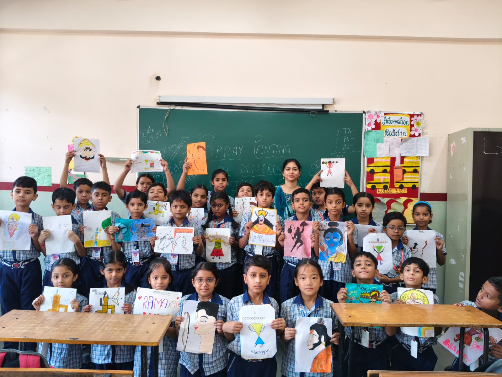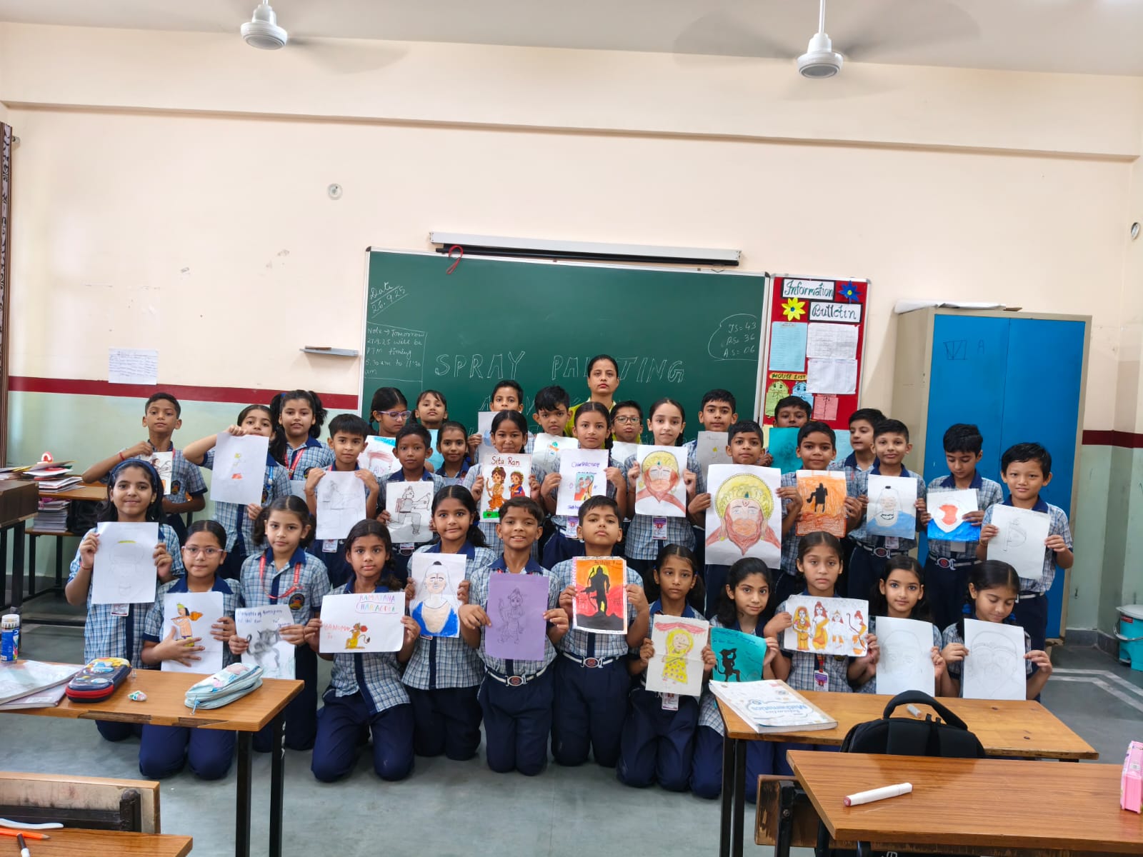The students showcased their artistic skills through Puppet Making, where they crafted colorful puppets of different characters from the epic. The Spray Painting activity added vibrancy as children used bright colors to create stunning artworks inspired by the stories of Ramayana. In Portrait Making, students beautifully drew and decorated portraits of characters like Lord Rama, Sita, Hanuman, and Ravana, bringing the tales of courage and righteousness to life.