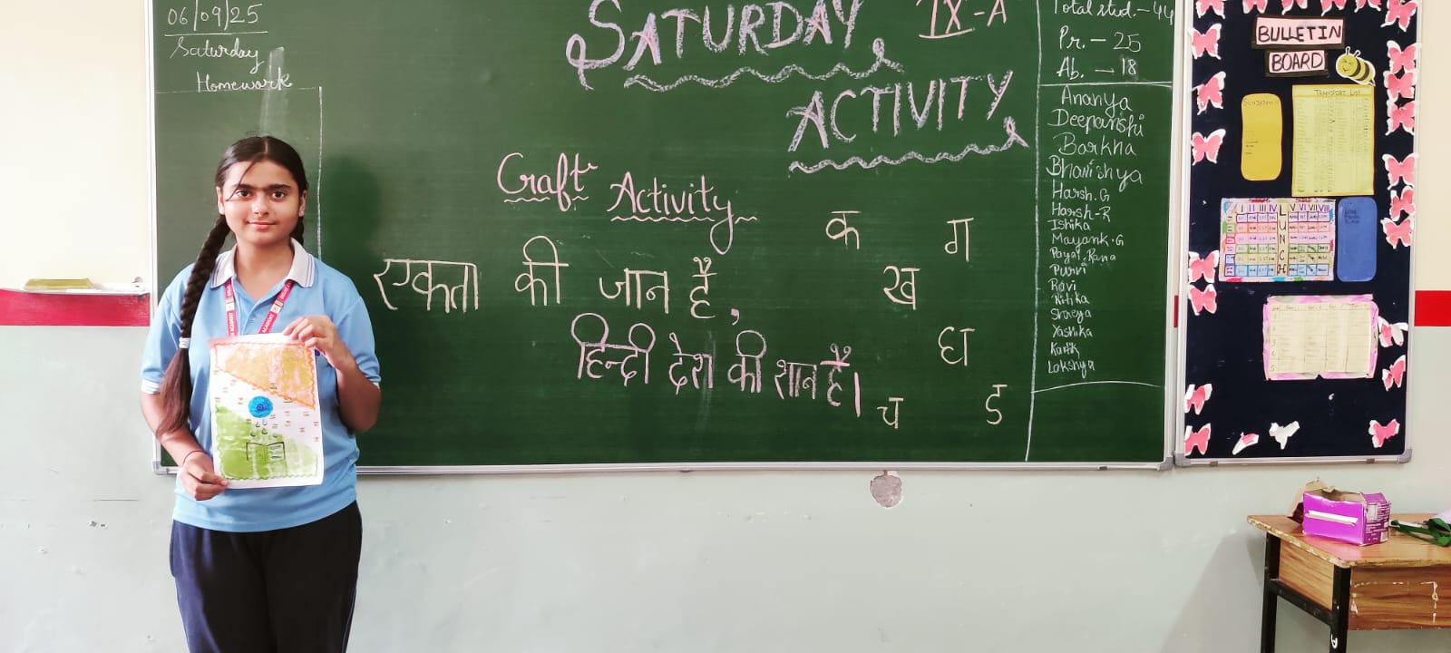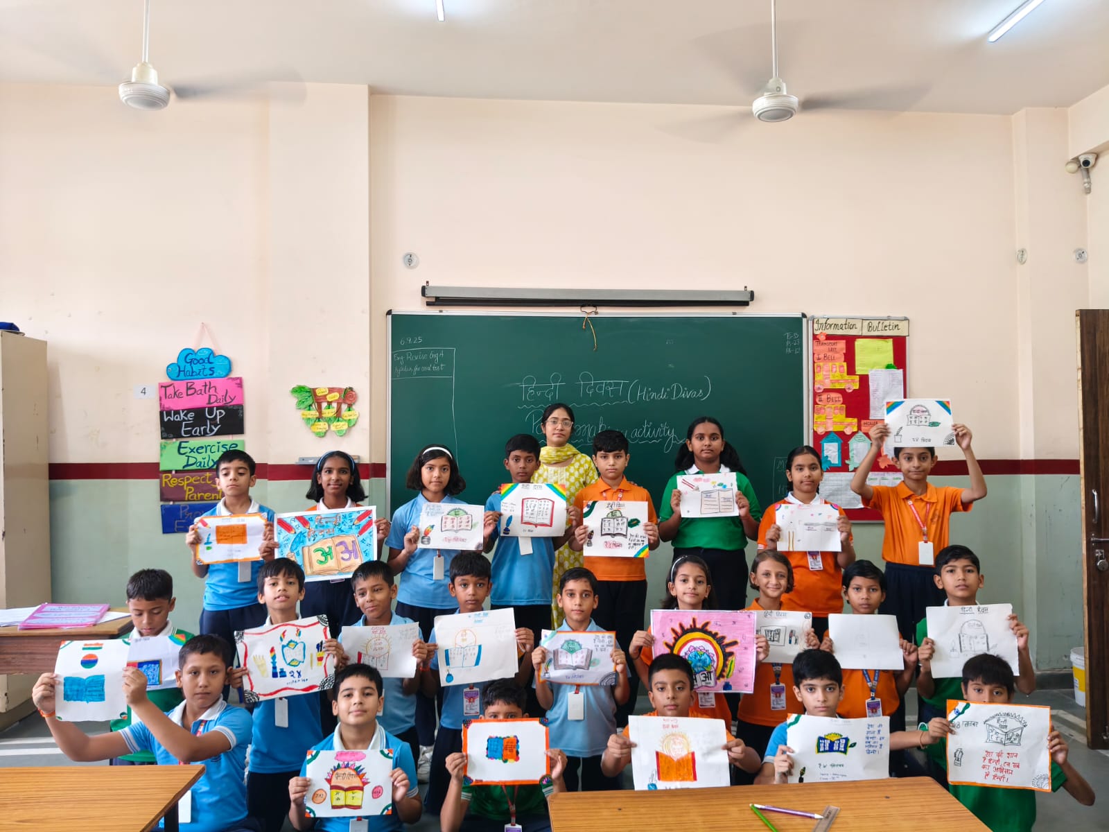 The students highlighted the richness and significance of the Hindi language. They actively took part in the activities and showcased their talent and creativity through thoughtful ideas and artistic presentations. The badge-making activity added a special charm as students proudly wore badges with inspiring messages in Hindi.