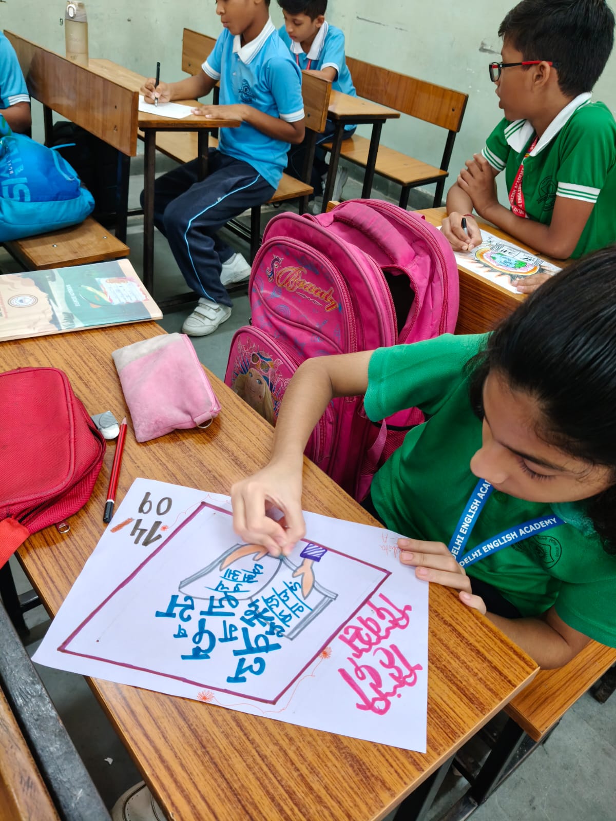 Delhi English Academy School celebrated Hindi Diwas with great enthusiasm and excitement. To mark the importance of the Hindi language, students participated in various creative activities such as poster making, collage making, and badge making.